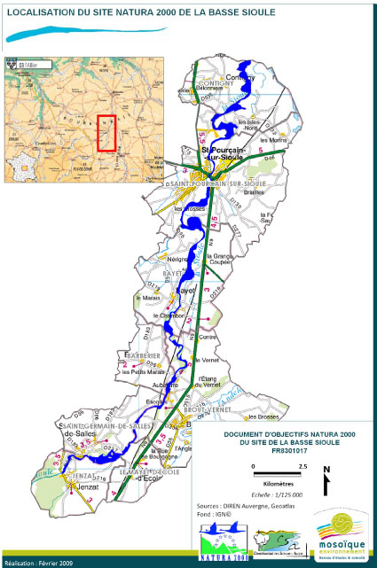 Le site Natura 2000 FR 820 1017 « Basse Sioule » s’étend de part et d’autre de la Sioule, de la sortie des gorges jusqu’à la confluence avec l’Allier. Sur cette partie, la Sioule s’écoule sur les formations oligocènes de la plaine de la Limagne. Le lit mineur est plus large qu’en amont et la rivière dépose sables et graviers.