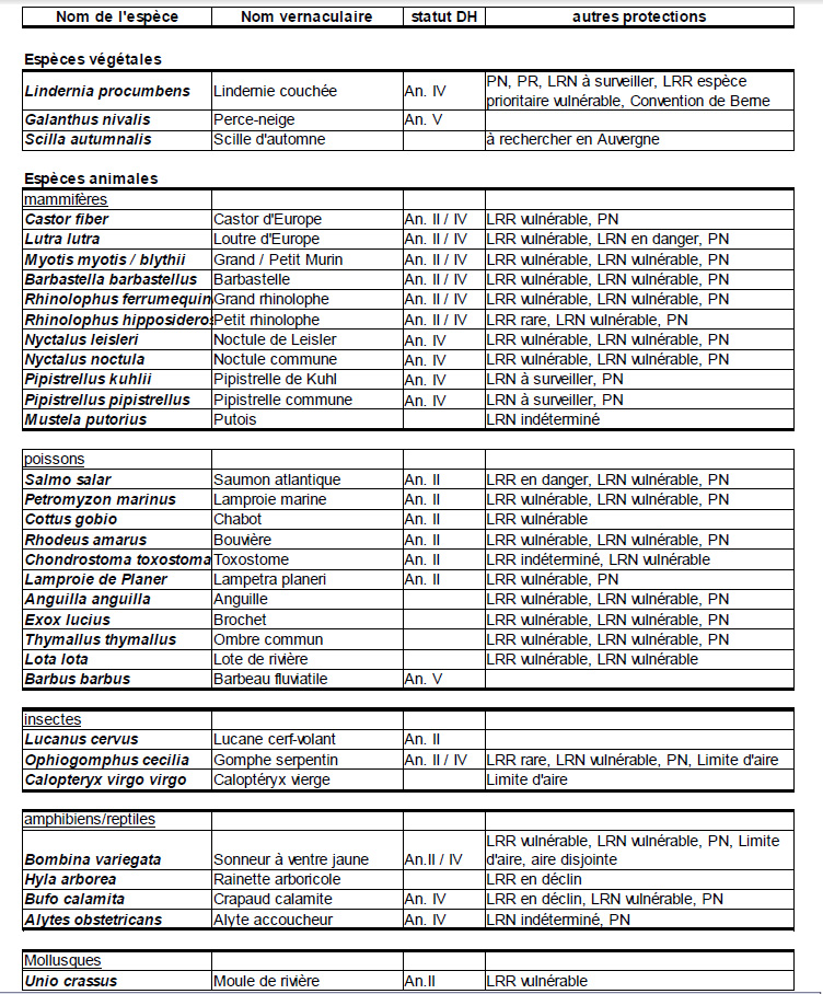 végétation rase dont la présence est liée à la dynamique de la rivière (alternance des phénomènes d'érosion et de dépôt de bancs alluvionnaires) qui accueillent, entres autre l'épervière de la Loire.